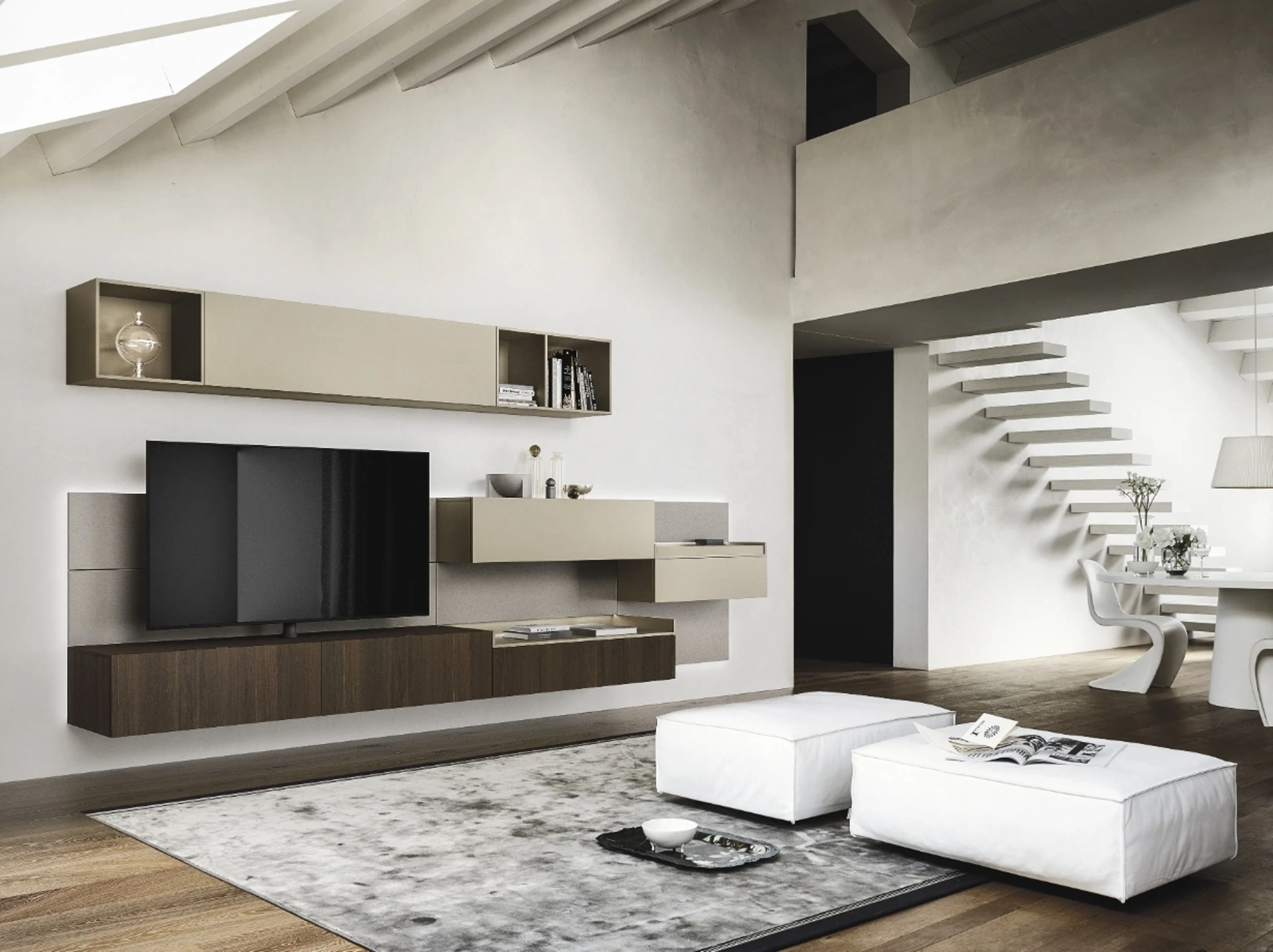 Le Pareti Attrezzate hanno acquisito un posto di primo piano nella zona giorno delle nostre case: sono arredi multifunzionali e salvaspazio sempre realizzabili su misura. Attraverso un gioco dinamico di accostamenti fra componenti a giorno o vani chiusi, le Pareti Attrezzate moderne arredano il soggiorno ottimizzando ogni spazio. Questa parete attrezzata è una delle soluzioni della marca e ti consentirà di progettare il soggiorno secondo le più particolari problematiche abitative.